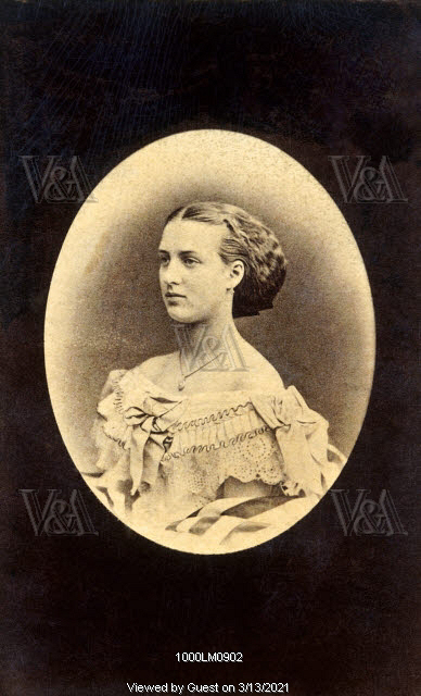 Her portraits in 1860 and 1861 do not show any chokers being worn. This could have been the fashion or because she was still single. However, many articles note that the scar on her neck was from childhood.