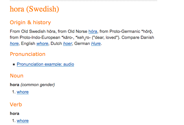 While Hora means mountain, it is interesting that the word means “whore” in Swedish. Yet, the Proto-Indo-European root of the word means “dear” or “loved one.”