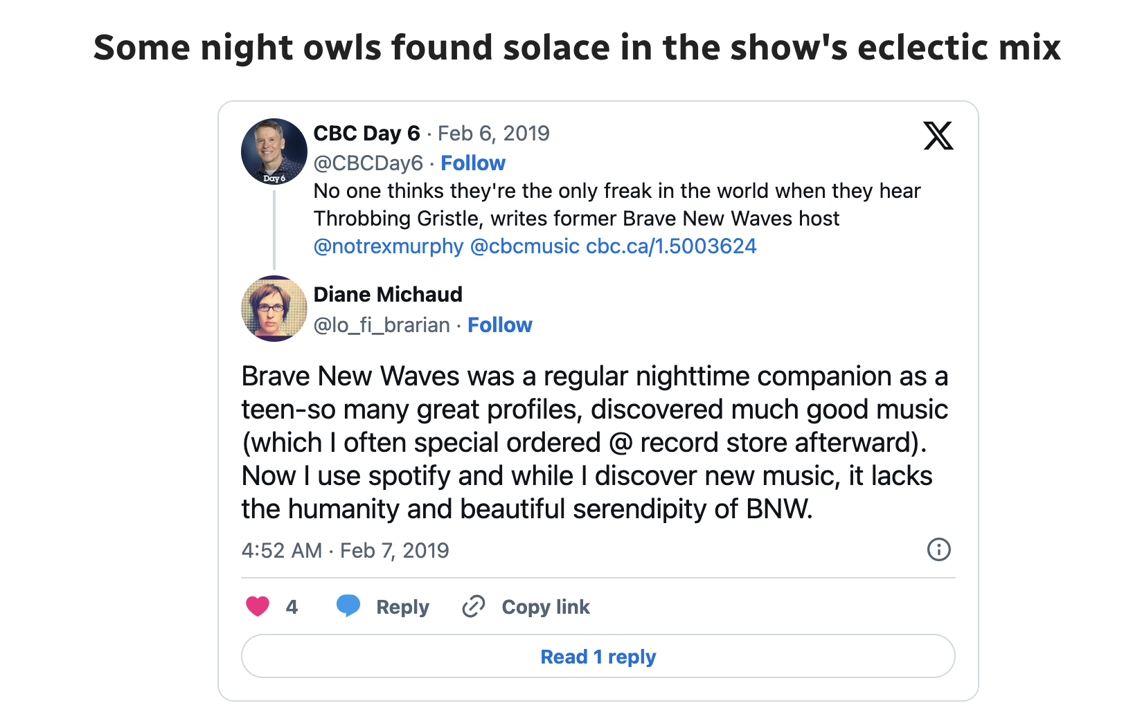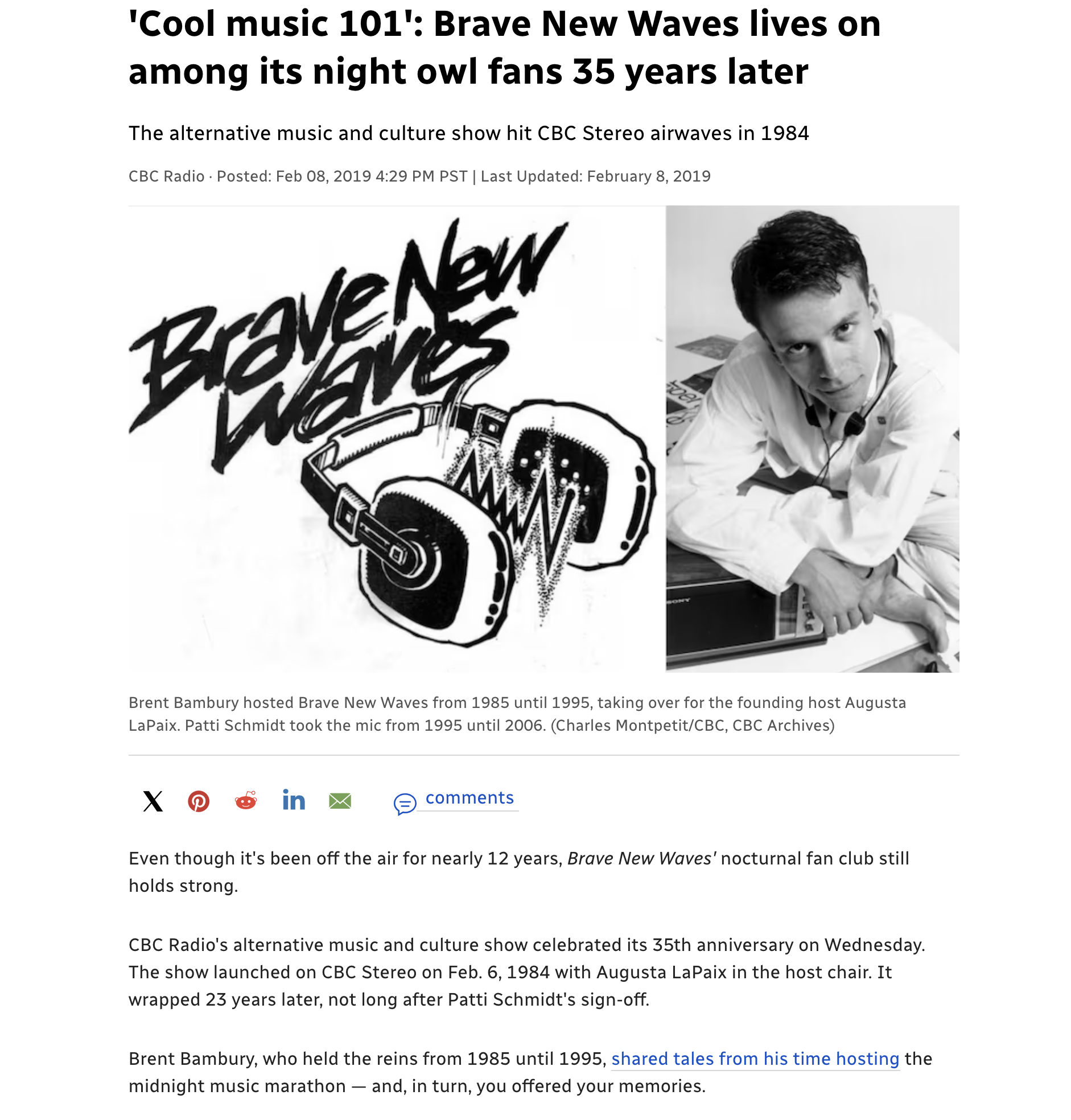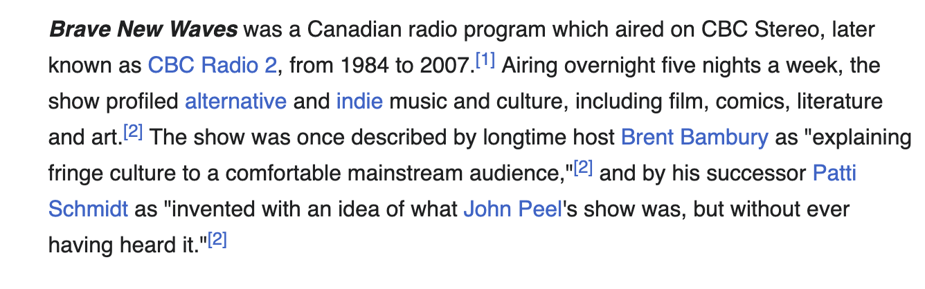 Since Brave New Waves was a weekday show, I would listen to Night Lines on the weekends.