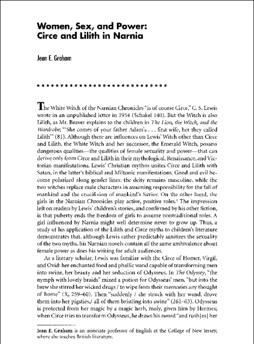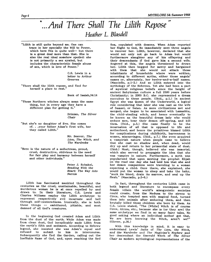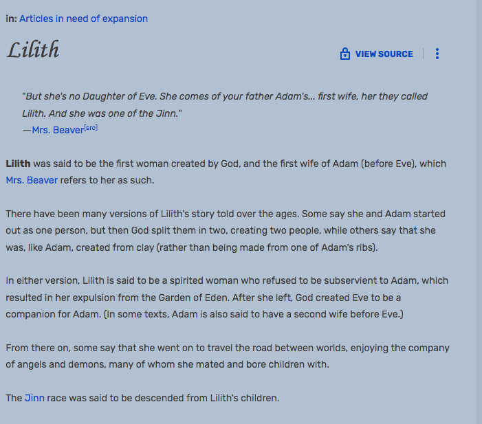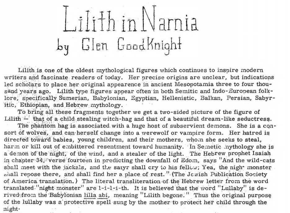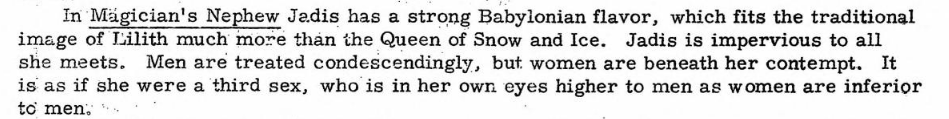 I find the bits of Lilith lore within the C.S. Lewis fantasy tale, Chronicles of Narnia, to be rather intriguing.