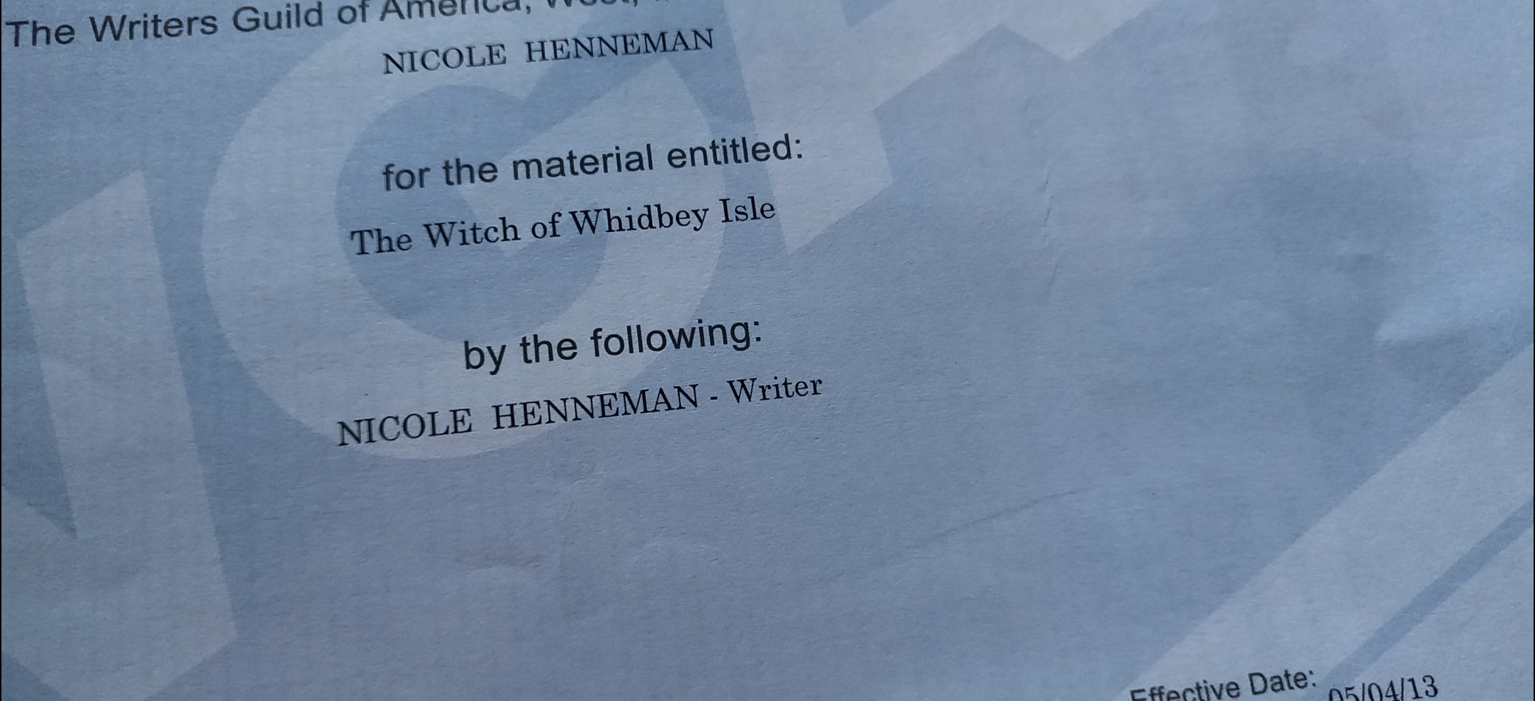 Fortunately, Witch of Whidbey was copyrighted in 2019 and was registered with the Writer’s Guild in 2013.