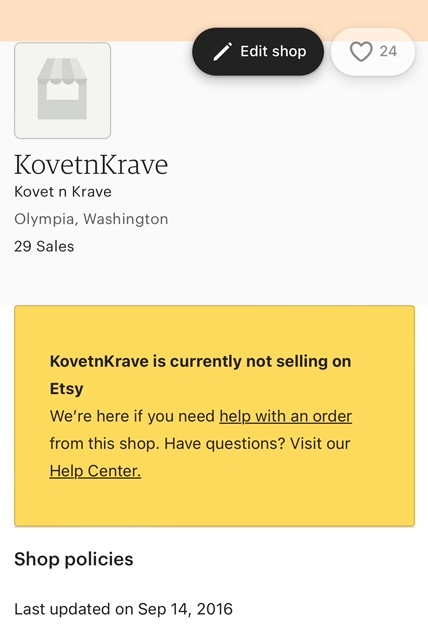 My Etsy shop was called KovetnKrave (Covet and Crave). I opened it over a decade ago.