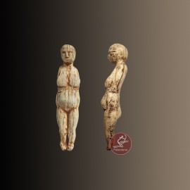 One of the oldest examples of facial art. In Gold ‘n Silver, humans discover dimension and portal use and when Eve demands to take my place, it causes a gap in the human record. As a result, we have to create some and leave it in various places. One of the faces is nicely carved while the other one is just dialed in. Funnily, archaeologists call that the work of the “less talented artist” or a child and still see the better carving as actually representative of the woman.