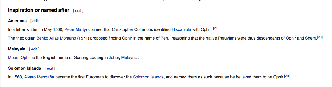 Someone who knew their Bible must have named the mine in Nevada because it shares the same name and was the location of some unusual skulls coated in silver. Or perhaps it is the origin of the mythic gold that was imported to the Middle East or where some of the Ophirs landed.