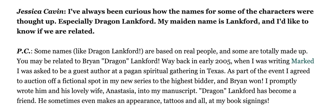 Fifth, House of Night has RedBird. Twilight has Old Quill. In my life, his name was Old Bird.