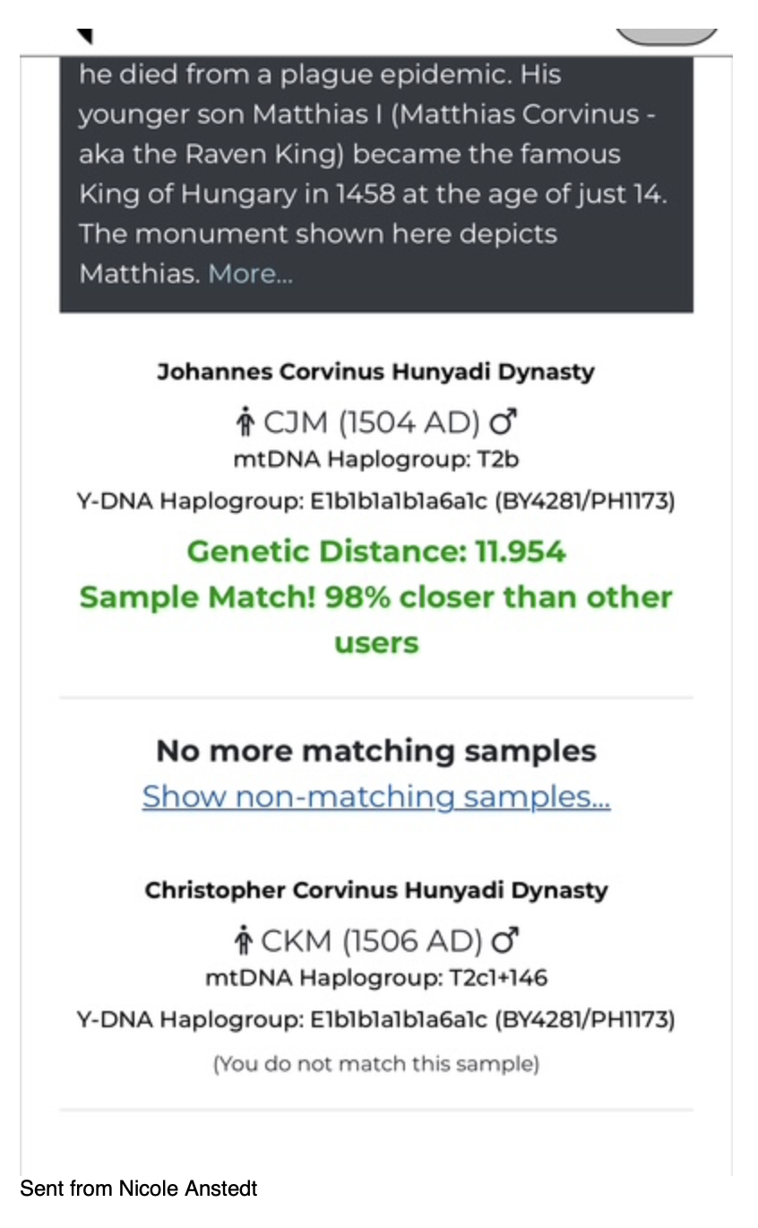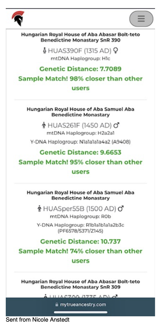 A. Confirmed Ancient DNA Matches via MyTrueAncestry: