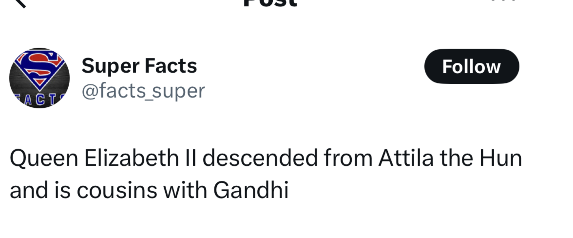 Biological Daughter of Queen Elizabeth II 38–44% (given genetic, facial, and anecdotal evidence)