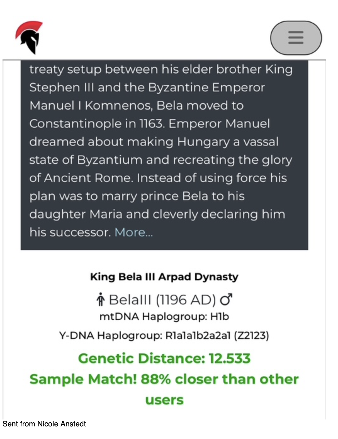 Nicole’s autosomal DNA profile presents statistically significant shared markers with multiple ancient royal and noble figures: