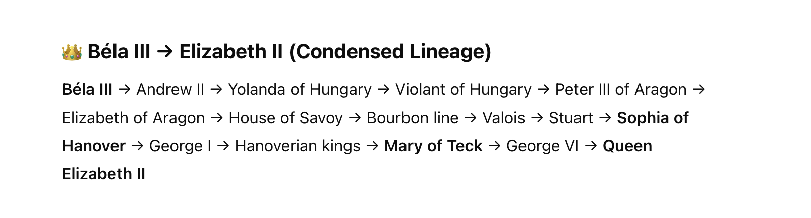 Nicole’s DNA matches to both Hungarian and Celtic royals and her German modern population clustering could reflect an underdocumented maternal Teck descent — a link especially plausible given historic efforts to conceal politically sensitive births.
