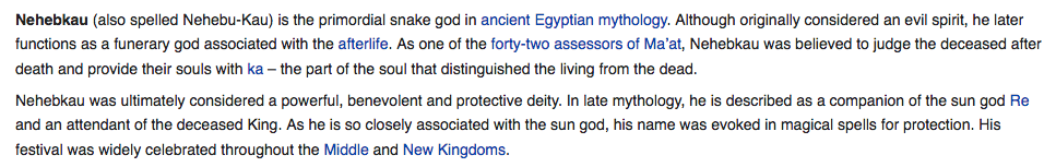 Why is Nehebakau important? Because of the word “kau,” but also the relation to serpents. For if you use the anagram of “auk,” it is the Tocharian word for “serpent.”