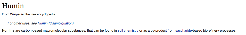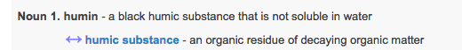 Humin There are some who contend that the human race was a chemistry experiment gone awry. Humin also plays a role in clay soil so that may be tied to the human clay origin story.