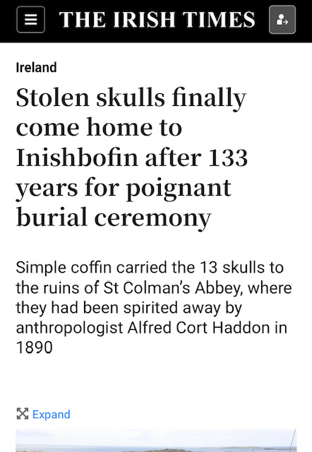 Inishbofin Skulls 1890. 13 Skulls. 133 Years. The skulls have been returned to Inishbofin and buried, but who were they?