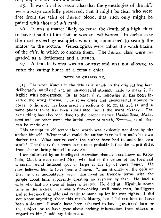 Interestingly, Kauwa is also the Hindi word for Crow. Again, we see an SE Asian/Indian Subcontinent tie to the Hawaiian islands. It is thought that the Kauwa might have also represented the original inhabitants of the island before the people who would become modern Polynesians arrived. There is some evidence that the Kauwa and ancient (mythical) Meneheune were the same people and that they originated from Kauai–hence the name. This is further supported by the unique structure and evolution of Kauai from the other islands.