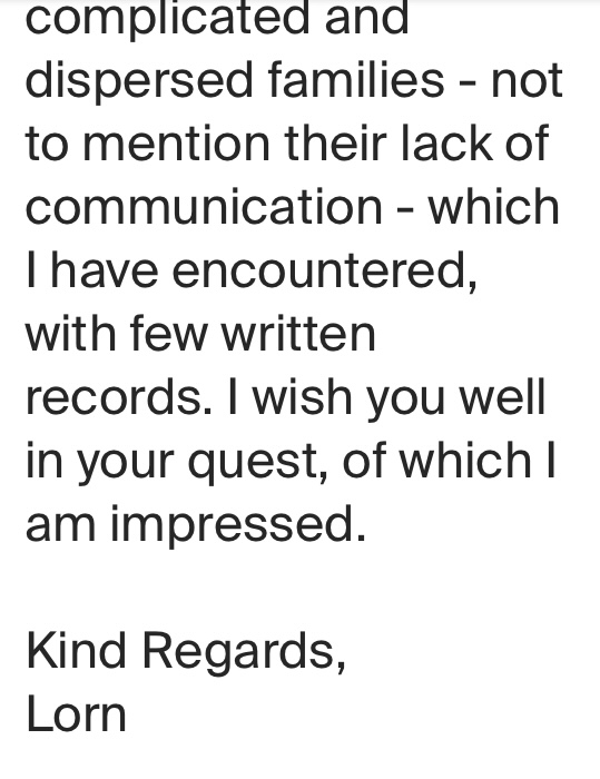 Lorn had received the scanned photo from Margarita. I never received any other photos of him or the Roe family. Nor did I ever hear directly from Margarita.