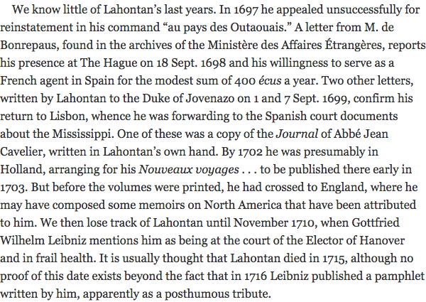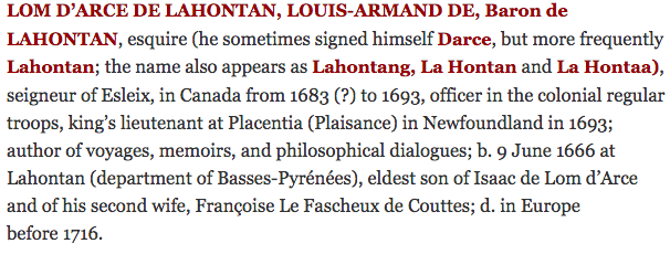 Armand Louis-Armand de Lom d’Arce de Lahontan, Baron de Lahontan (The Namesake for Lake Lahontan in Nevada)