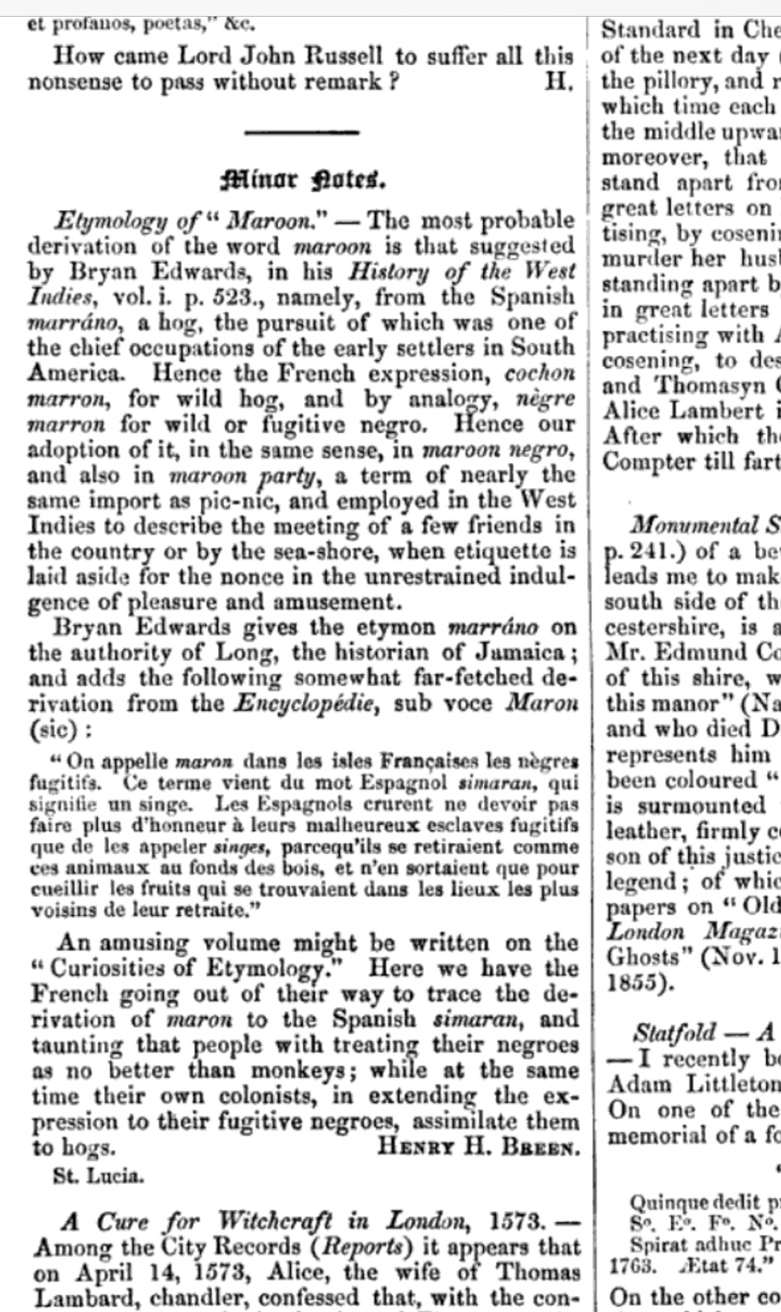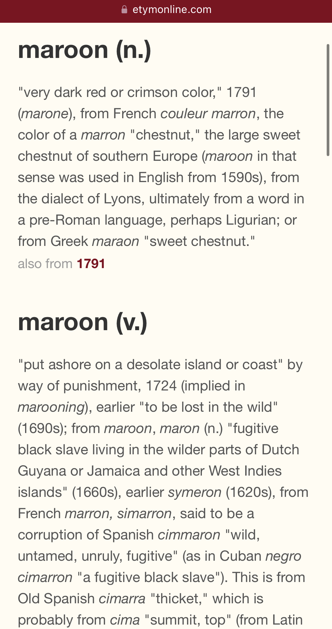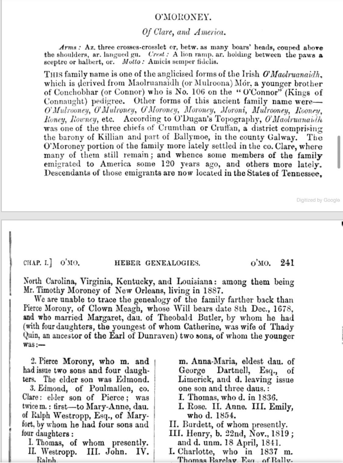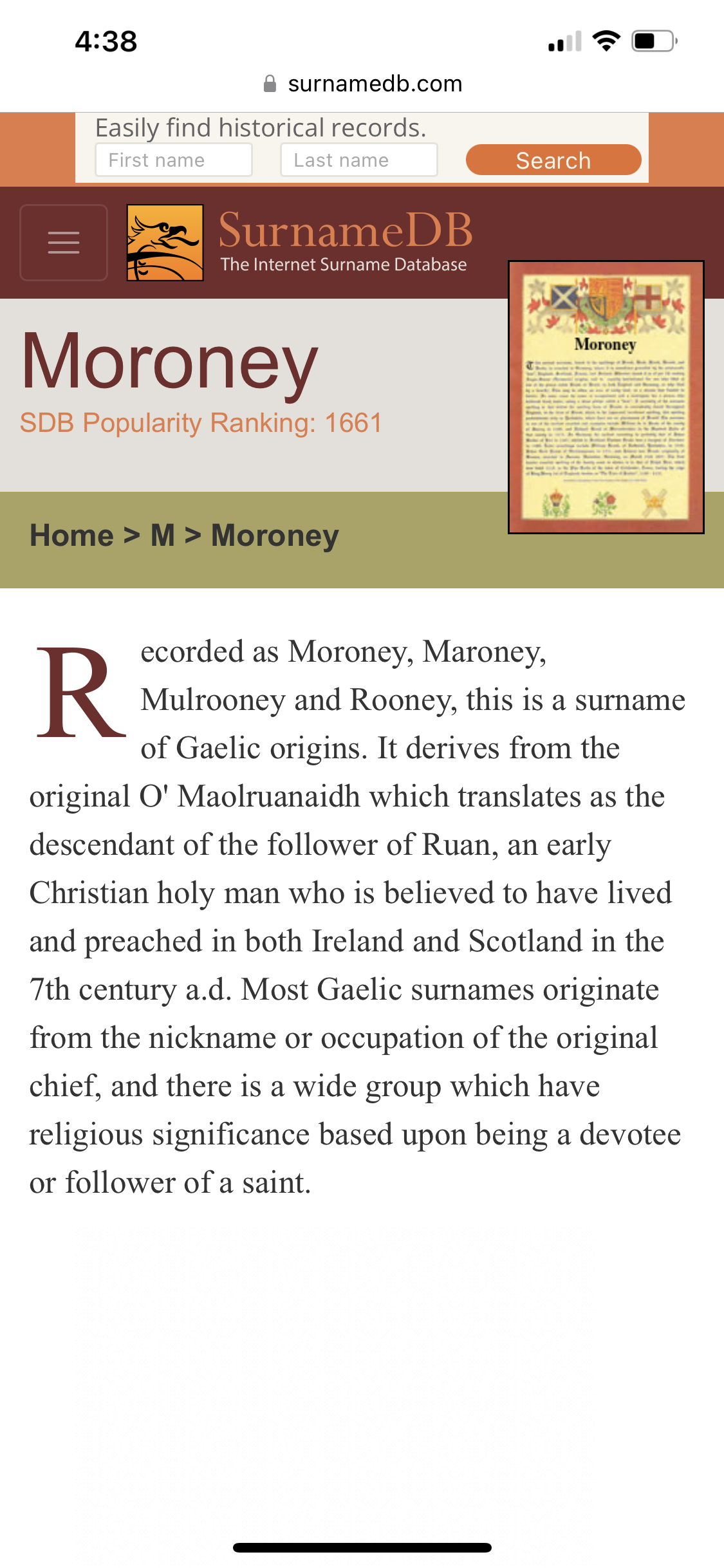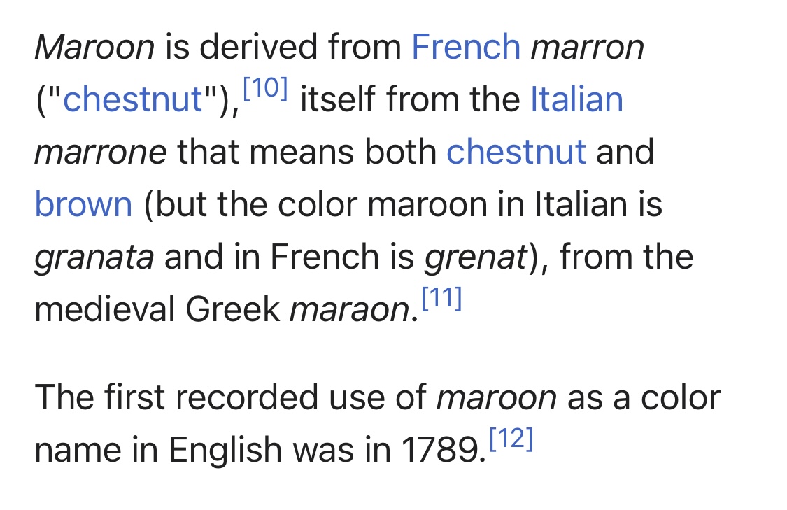 The Spanish etymology of the word may mean “wild hog,” and that might explain the origin of boar heads used in the family crests of families with the root of Maron/Moron. Historically, being a Maroon was a source of pride. Those familiar with fairy tales will obviously not overlook the use of three boars on the crest.