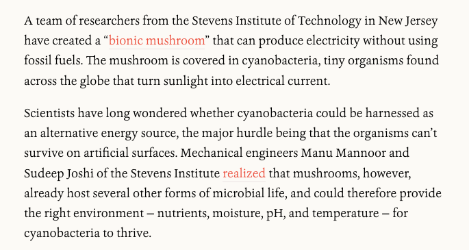 So how would Eve prove the value of her species playing a more dominant role? First, there is a mushroom and bacterial enzyme that can eat plastic. Now scientists have found a way to generate power from mushrooms. That is not to say there will not be ramifications from their use, but it is a possible immediate solution.