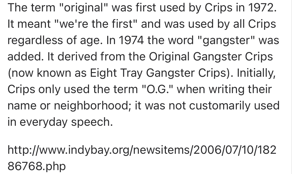 Regardless, there is documentation of the surf community using O.G./Old Guard before any gangs did. And there is also documentation within popular culture of Vampyre being called Originals or the Originals.