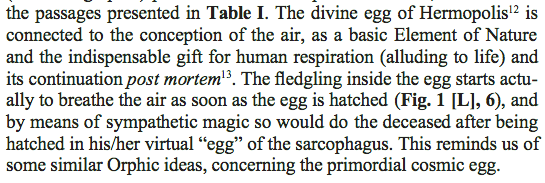 An interesting modern theory is that the cosmic egg was not born of a bird but was actually of a crocodile or serpent.