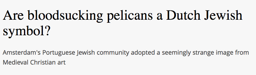 On the surface, the connection to Judaism would seem doubtful since the Hebrew word for Pelican is ka’ath, which means vomit.