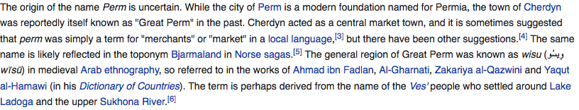 When listening to a native speaker say Perm, it sounded like Purim or Purin. I am not sure if these terms are in any way related but it was an interesting catch.