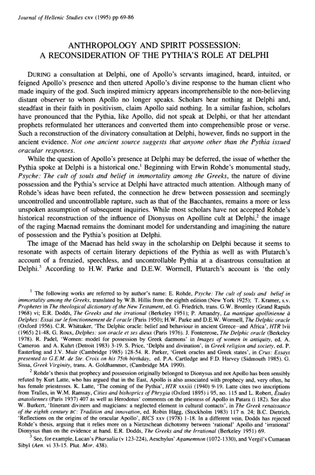 Pytho/n https://www.journals.uchicago.edu/doi/pdf/10.1086/369534 https://www.history.com/topics/ancient-greece/delphi https://www.academia.edu/37261146/How_the_Pythia_Really_Performed_in_Delphi_Instrument_of_Divine_Inspiration_or_Victim_of_Intoxication