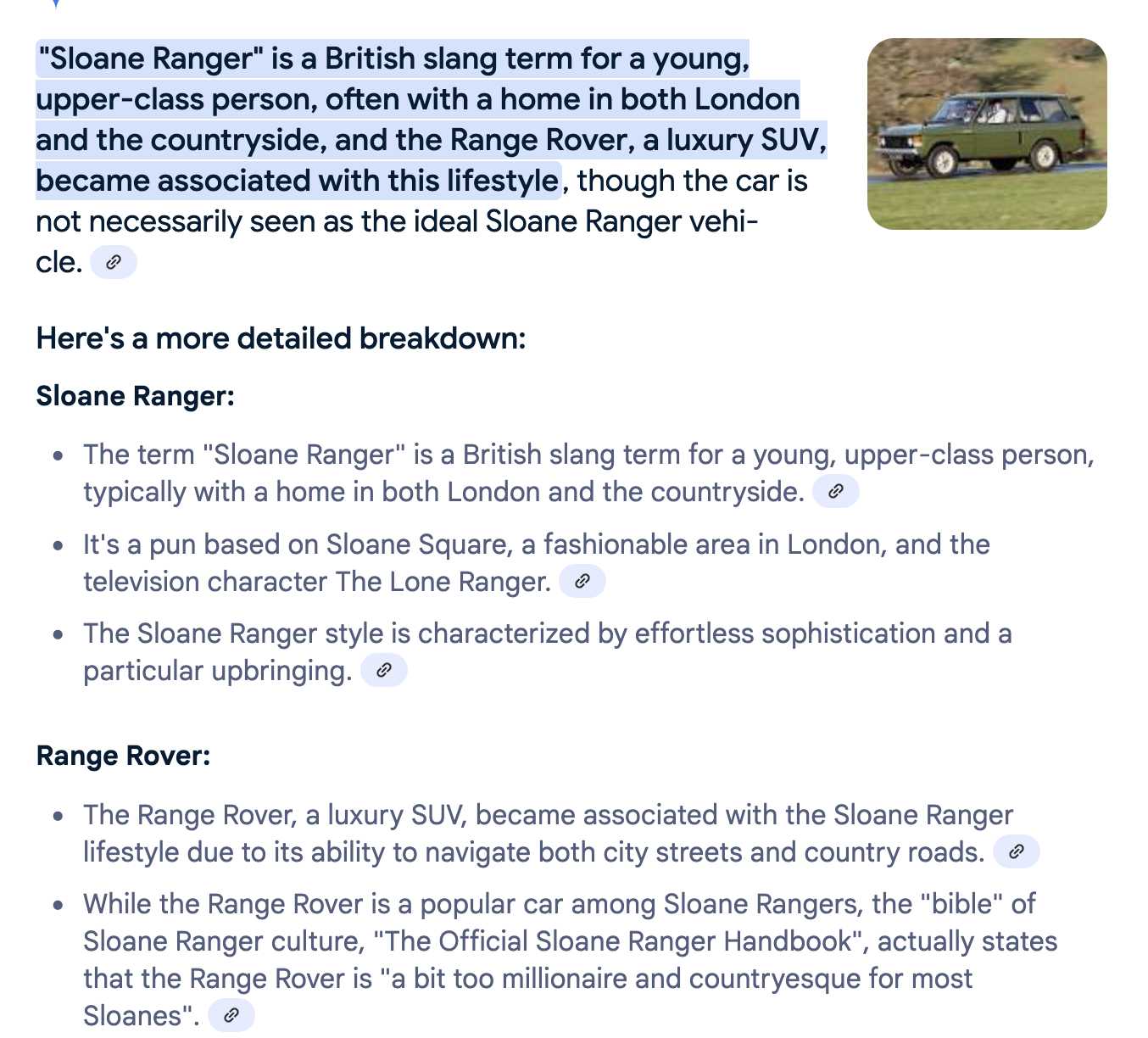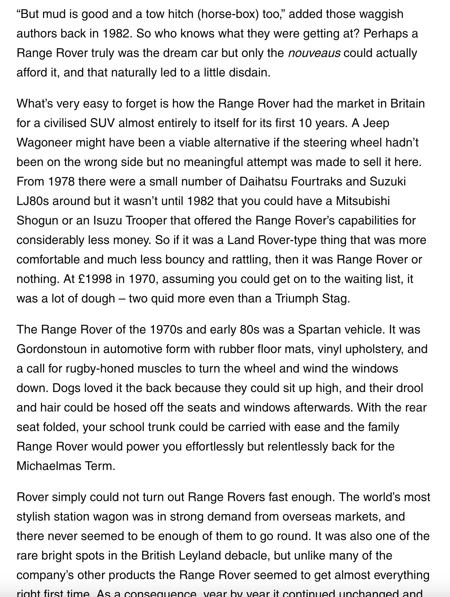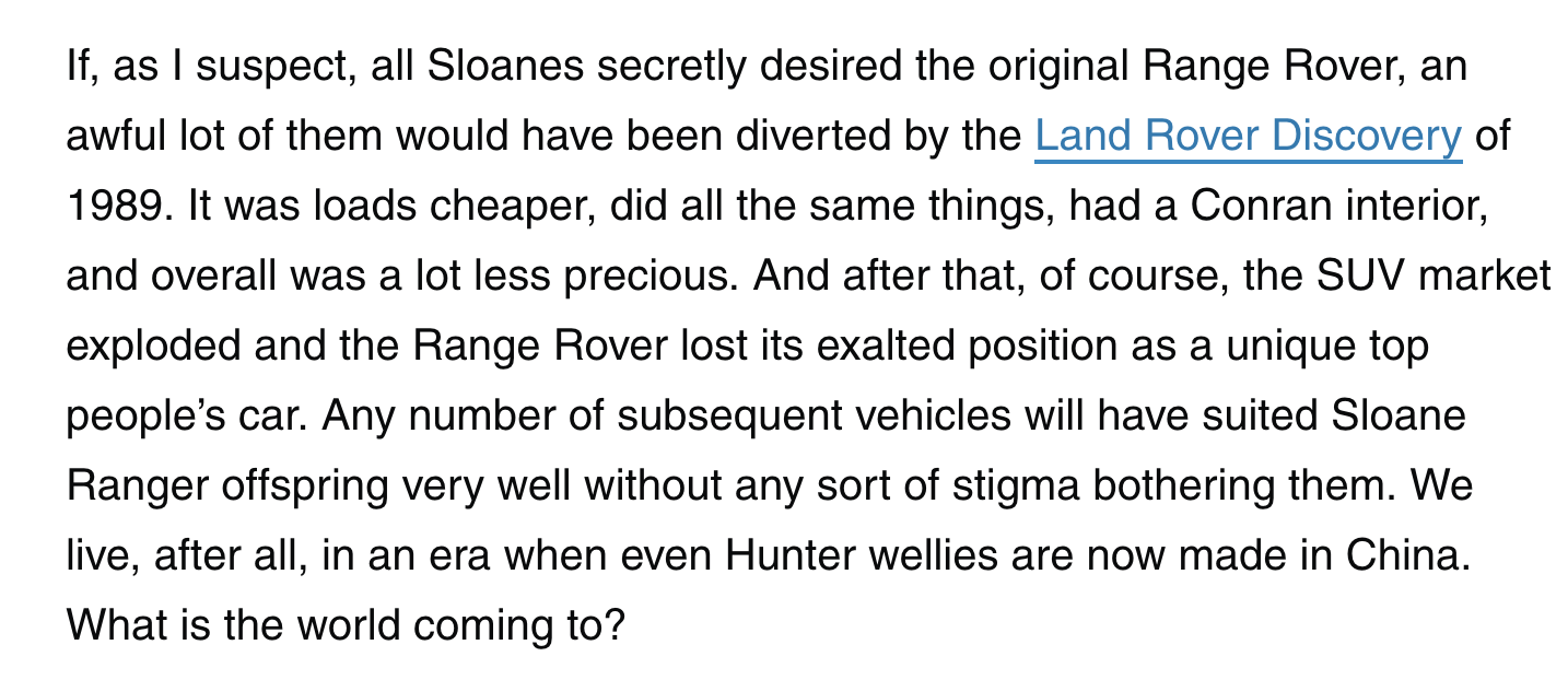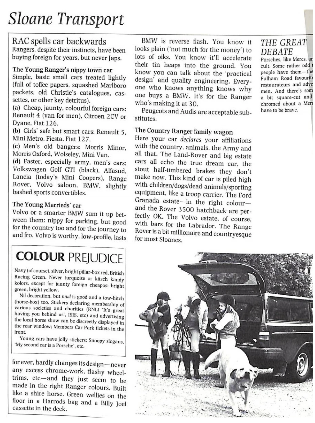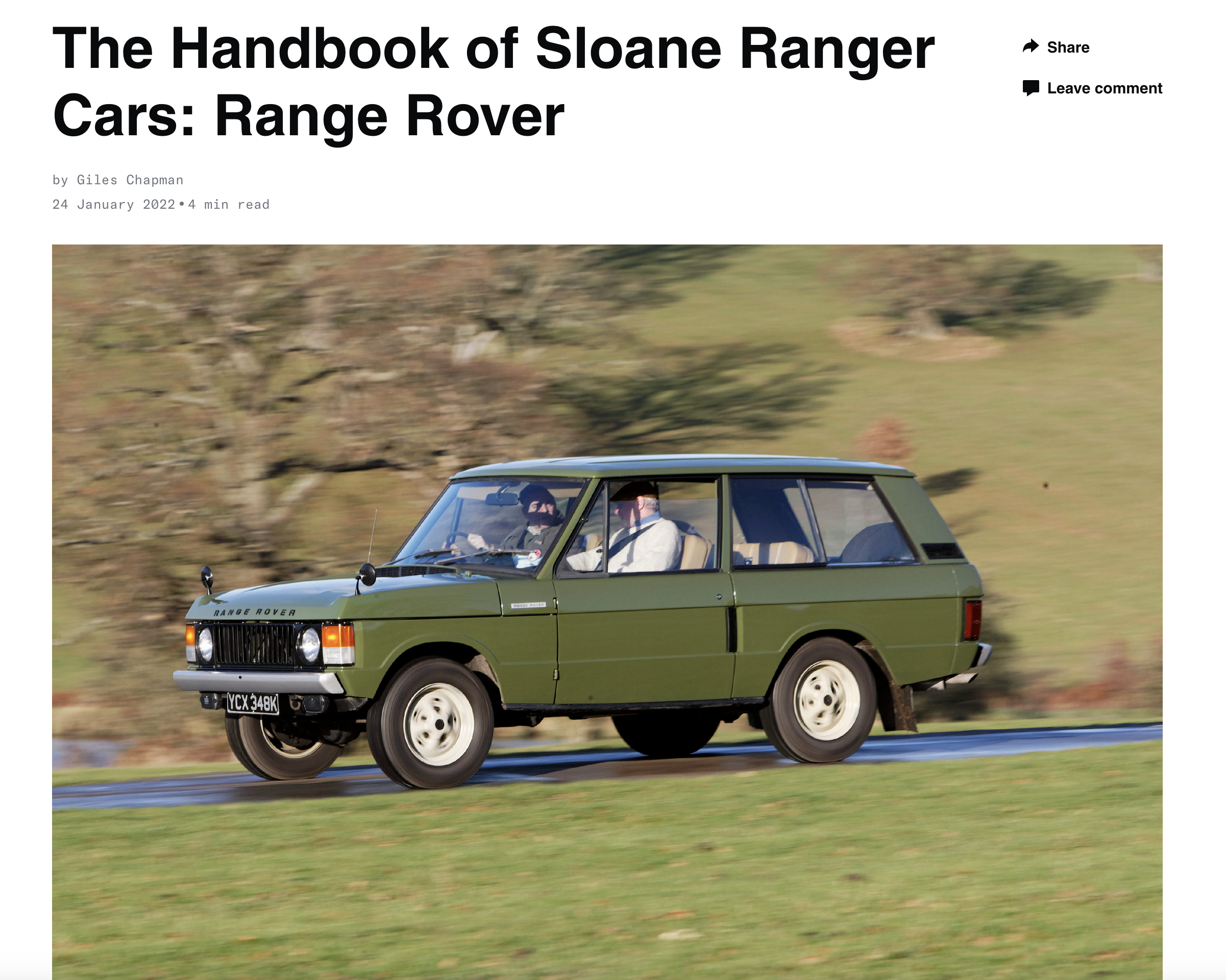 Some believe that Sloane Ranger was the result of their love of Range Rovers. I am here to put that notion to rest.