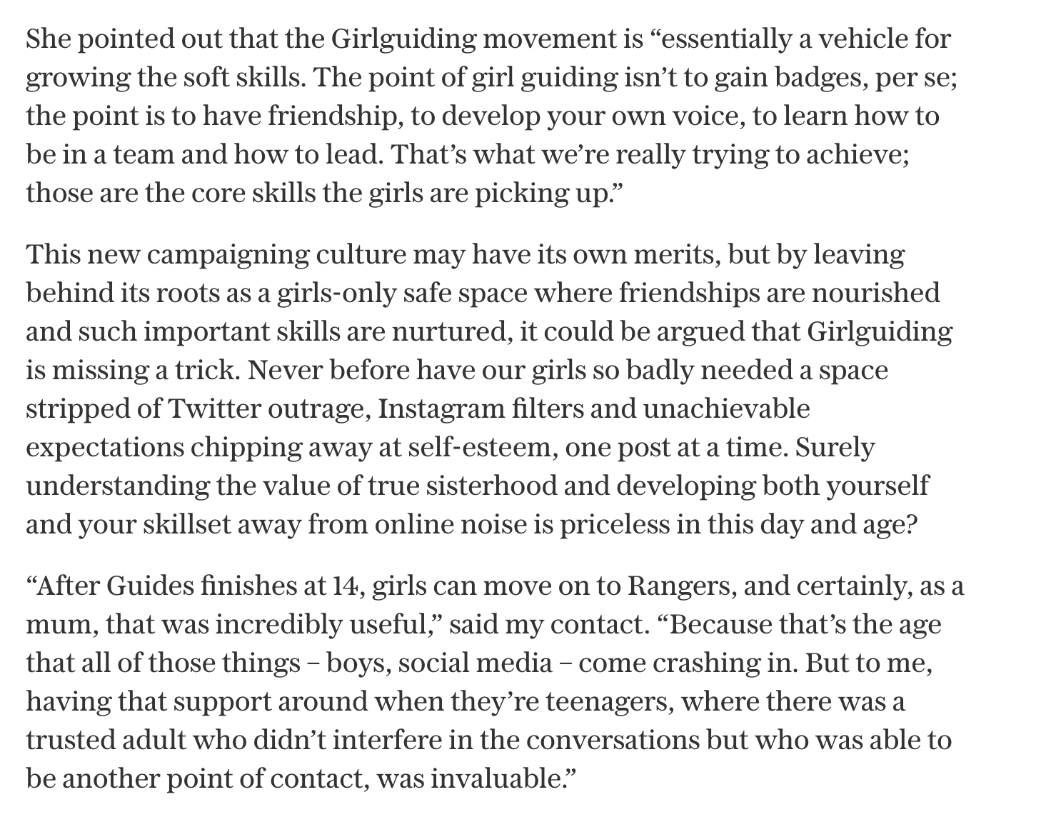 In the United States, I tried Brownies and Bluebirds but none were like Girl Guides. I just preferred it and live to that promise to this day.