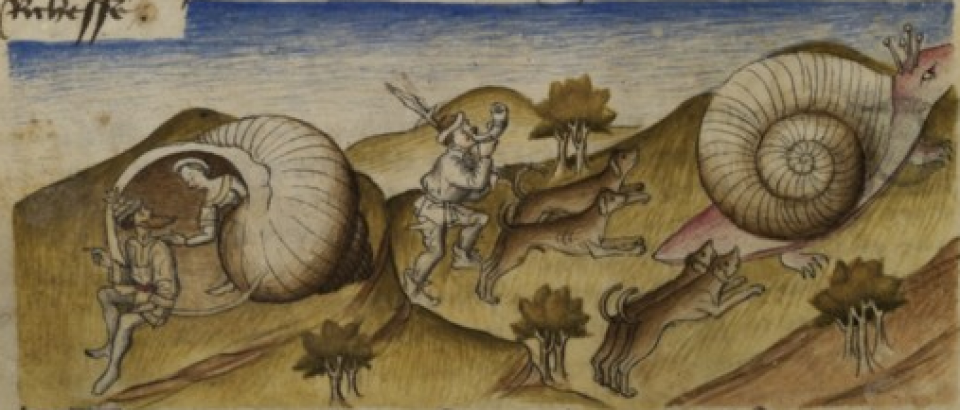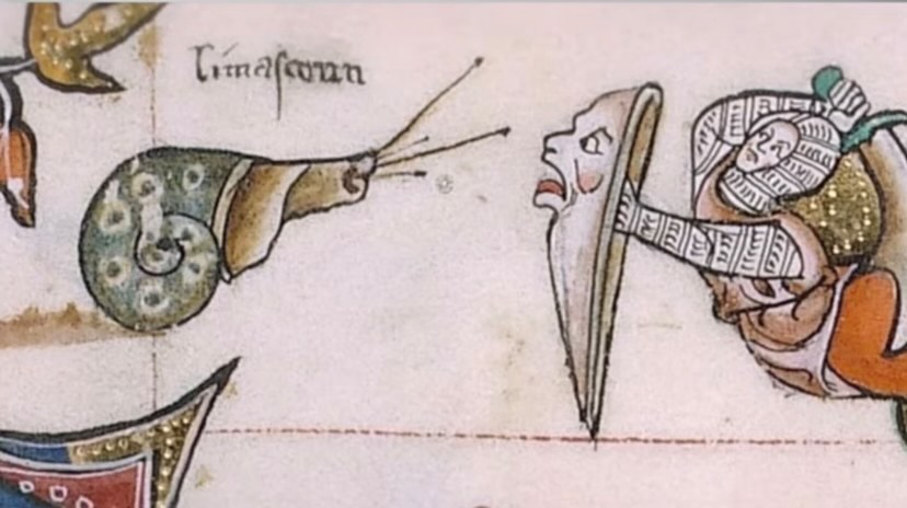 A key would be finding the group(s) that used shields with human faces. Or perhaps the knights are using human beings as shields and the true enemies of the snails are not human.
