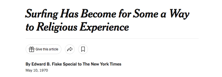 For surfers, this religious connection to the ocean is not new and reporters have been documenting it for decades.