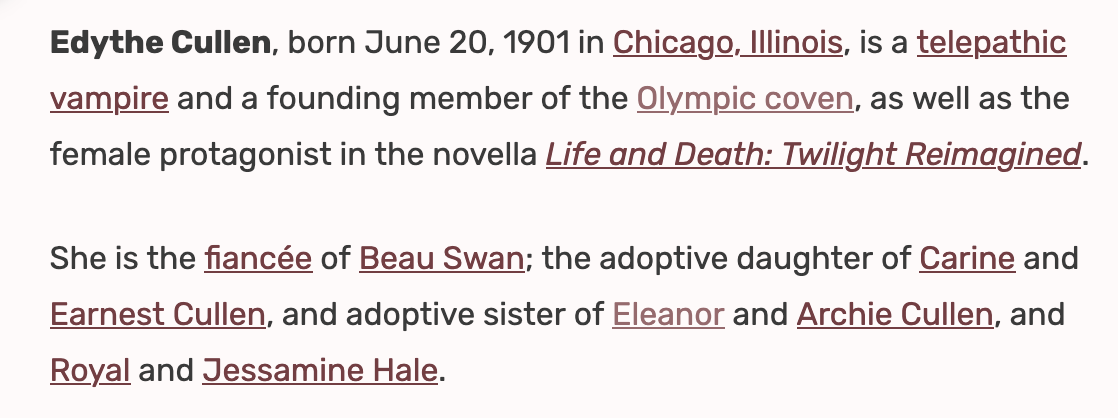 And Edythe Cullen is a character in Twilight who happens to be engaged to Beau Swan.