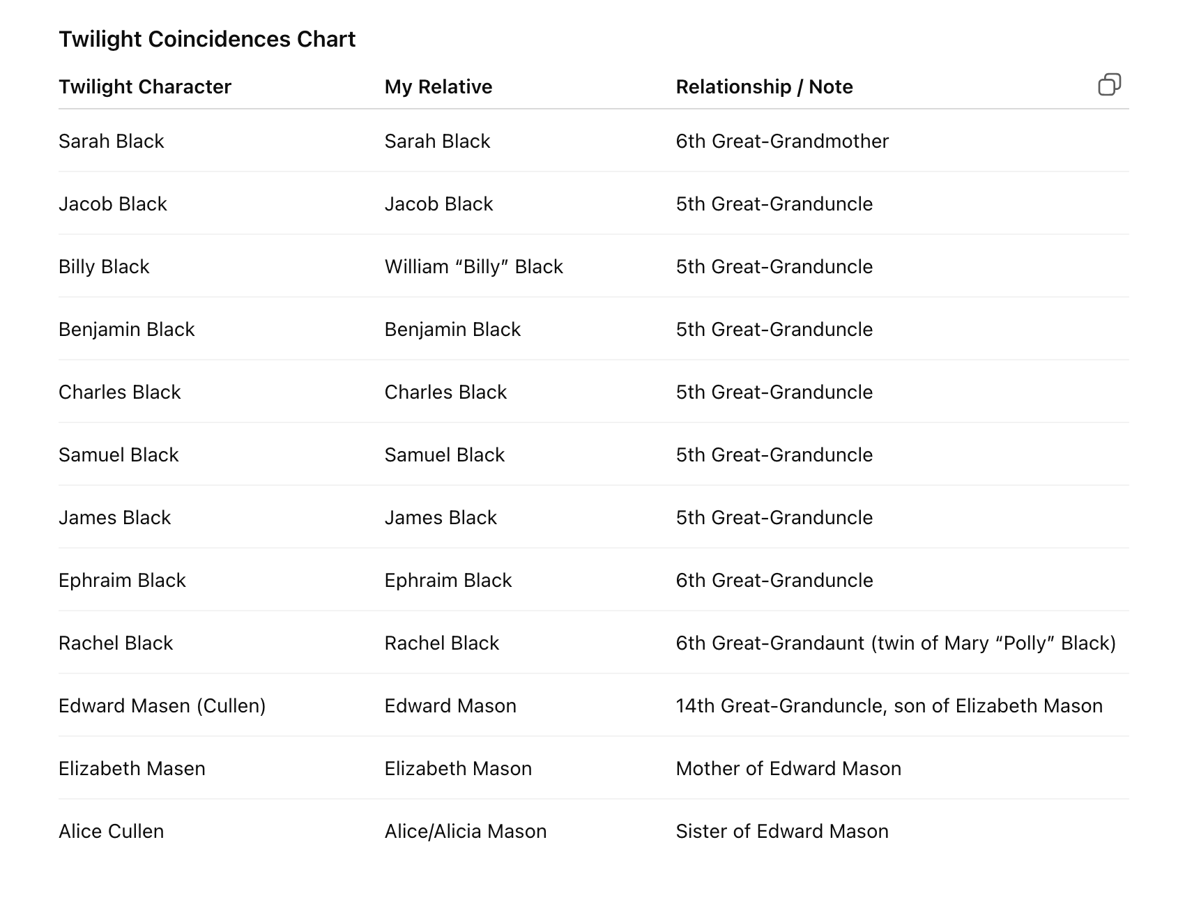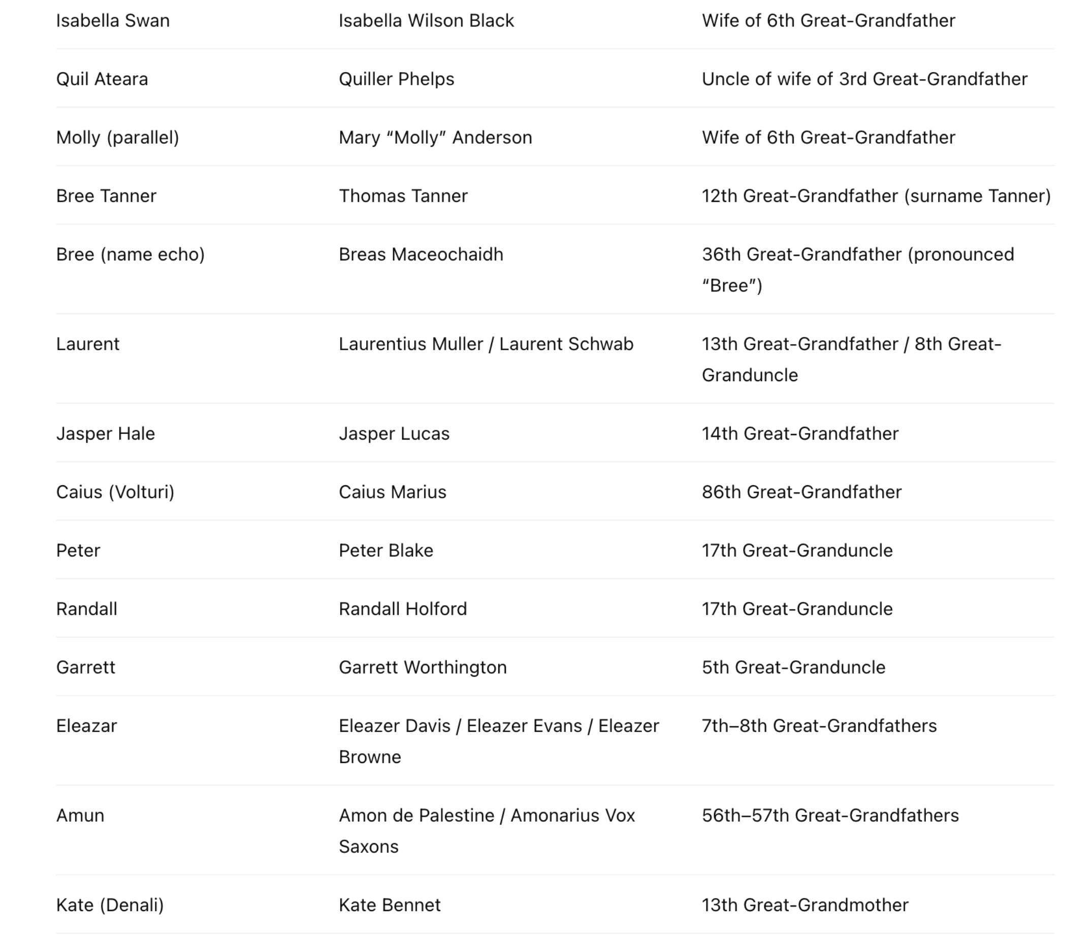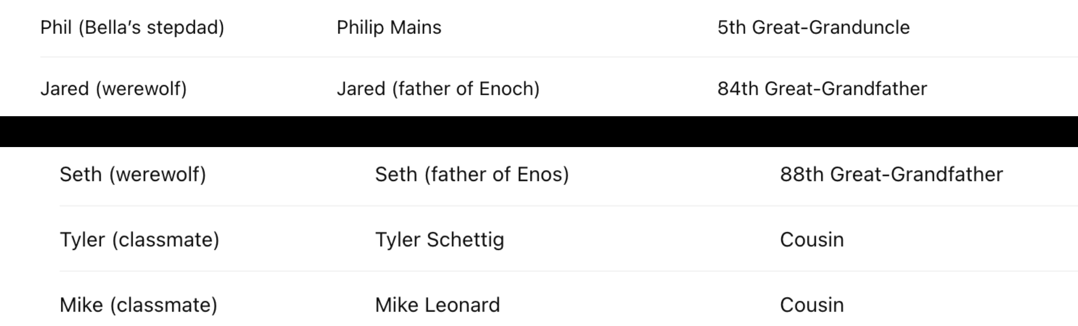 Eliza Clearwater’s maiden name in Twilight is Smythe. Rosalie’s surname in Twilight is Hale.