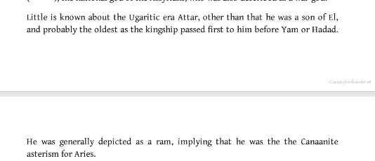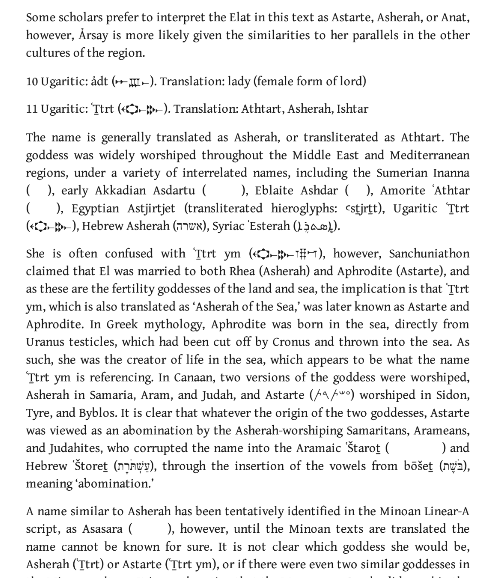 The goddess closest to Artemis is Anat. She is known as “the virgin” and “mistress of the animals.” Specifically, she is not regarded as a fertility goddess. In these texts are some of the first divisions between the goddesses that will be blurred in texts later-particularly between Aphrodite and Venus.