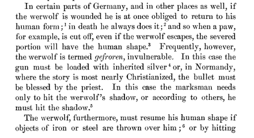 Less well-known were the perported folk medicine uses for wolf body parts. This was a large driving force behind human hunting of werewolves and was often masked by the reports of werewolf attacks in order to justify the hunt and gain assistance in tracking the wolf.