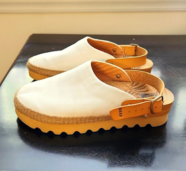 These clogs would go best with a similar colored linen or cotton beach pant. You could also work them with capris.